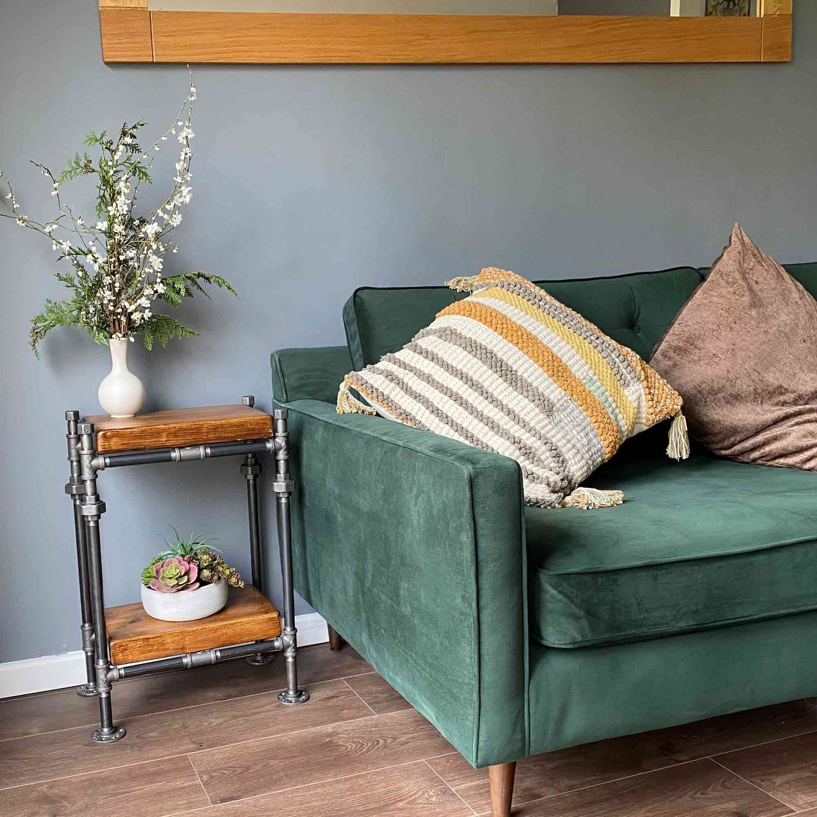 This beautiful side table is hand-made from genuine industrial pipes and fixings with chunky solid wood shelves in a choice of finishes.