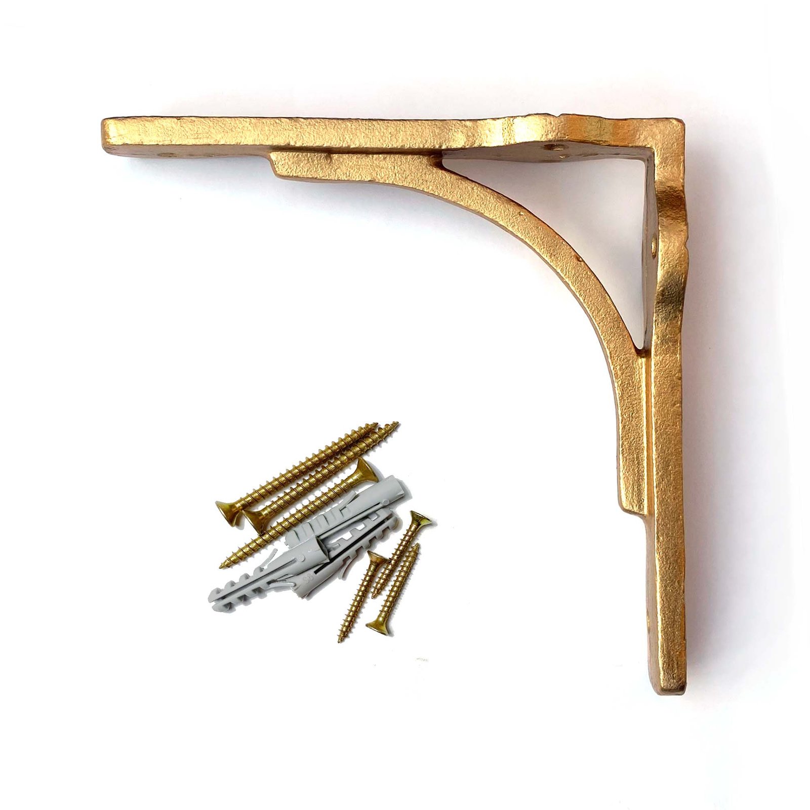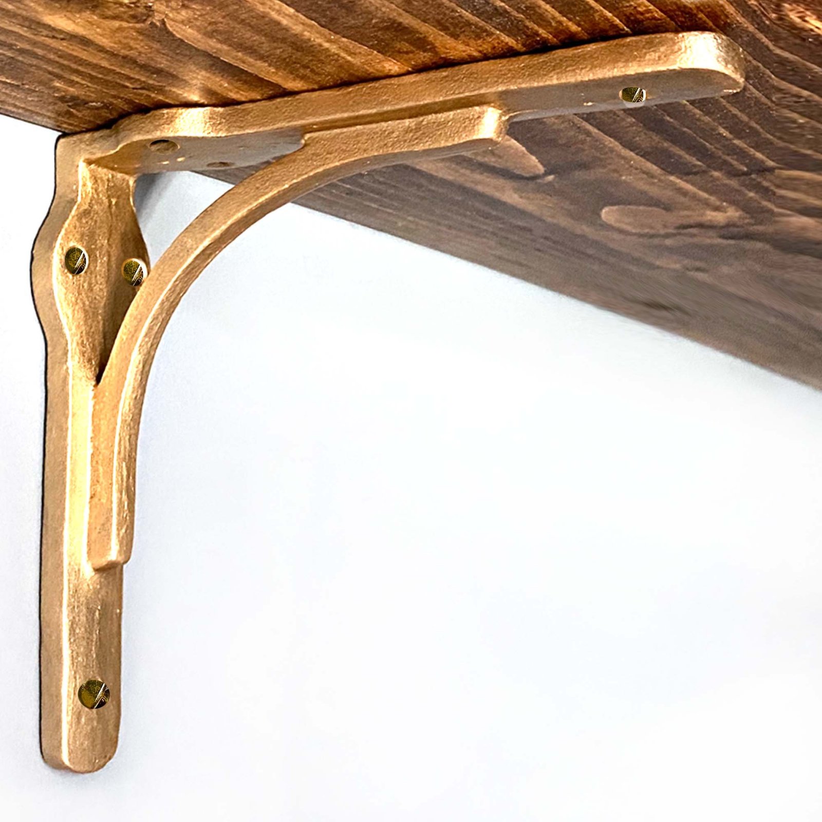Beautiful cast iron gold-finished shelf brackets, solid strong classic
